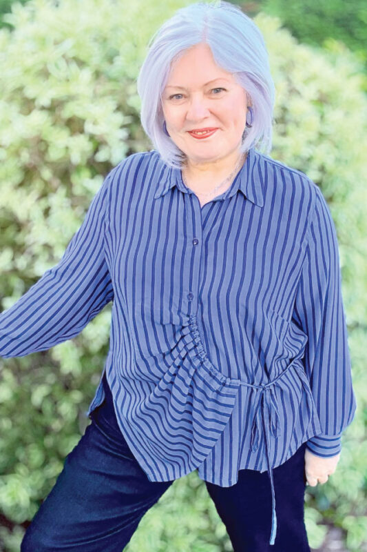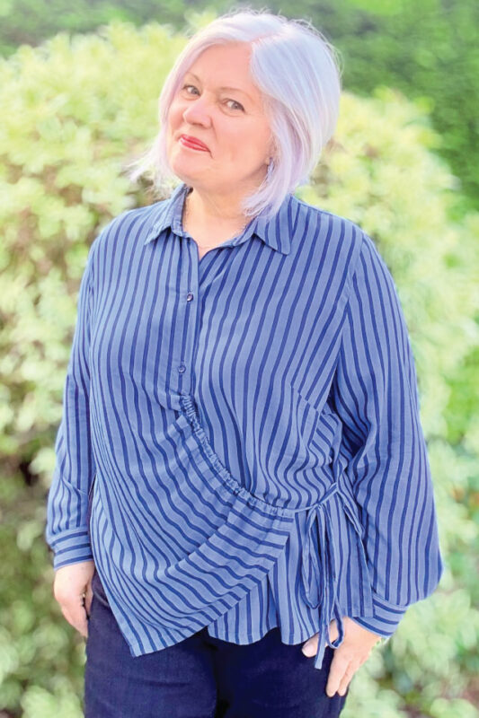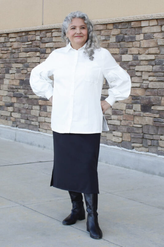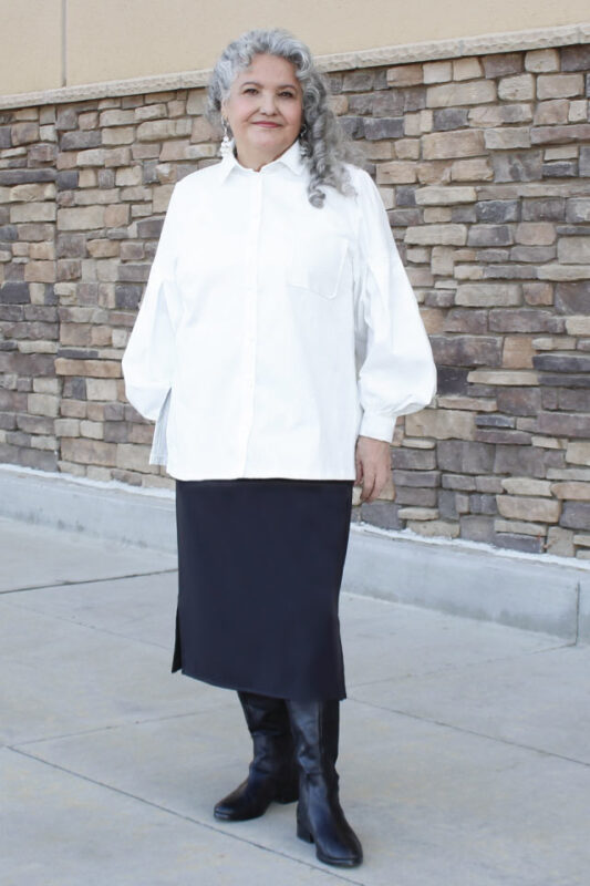 I am Synthia G from Central Ca. Love the Rylie pattern with 3, yes 3 different tops. I sewed up two, the one with the Trend influence with bishop/pleated sleeves, and the Tailored influence with long sleeves. I used cotton blend fabrics for both tops. I wore the white bishop/pleated sleeves, for a dinner out on my Birthday. I did receive a compliment and was asked where I bought it. I did my normal DS adjustments for a proper fit such as for graded down 1 size for a sloped shoulder and raised bust point. It is always a good idea to sew up a toile to obtain a proper fit and iron as you go along. What a great design Ann, love all 3 versions. Once I buy the right fabric, I’ll sew up the 3rd option with the ties. https://sewsynsewn.blogspot.com/2023/ – sewsynsewn on FB