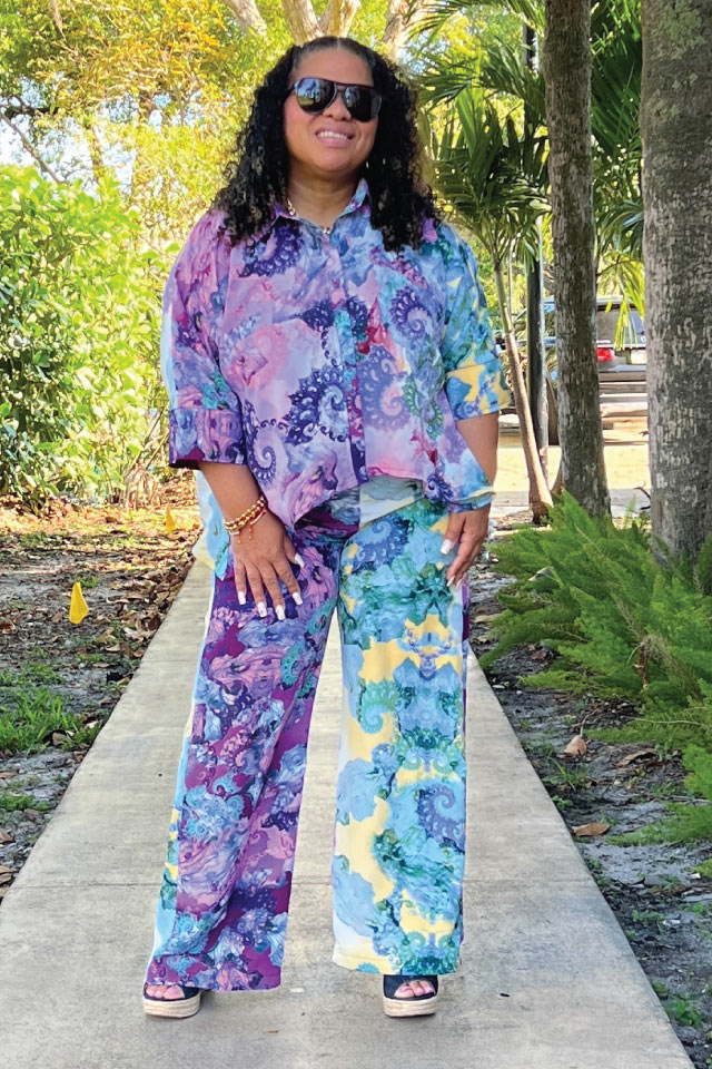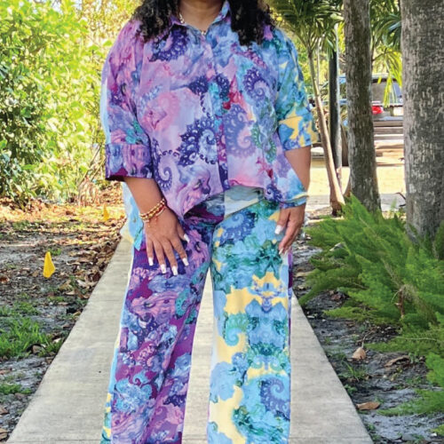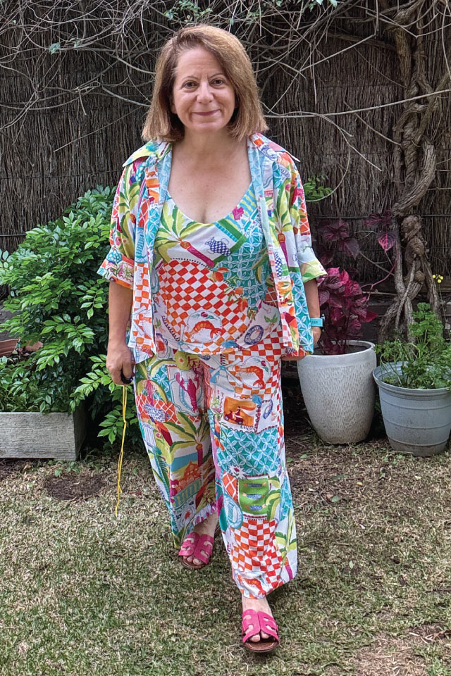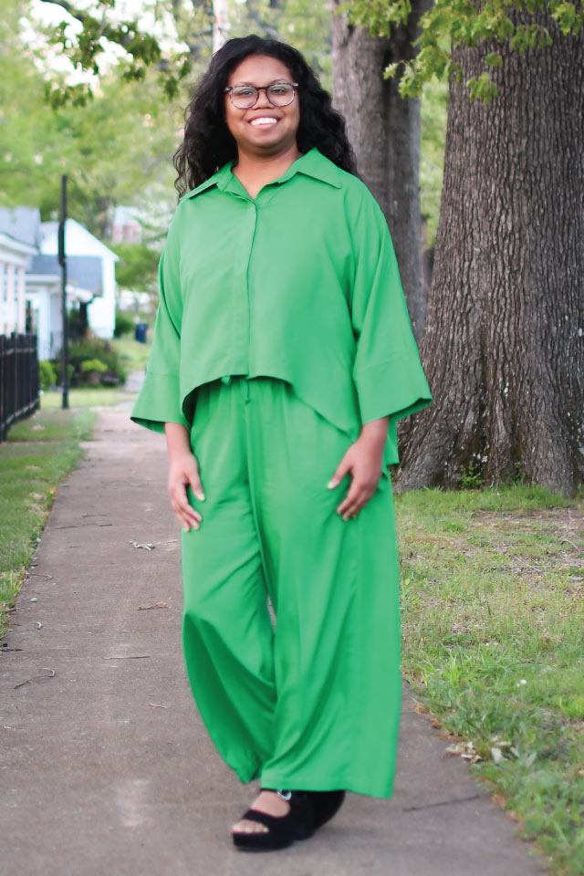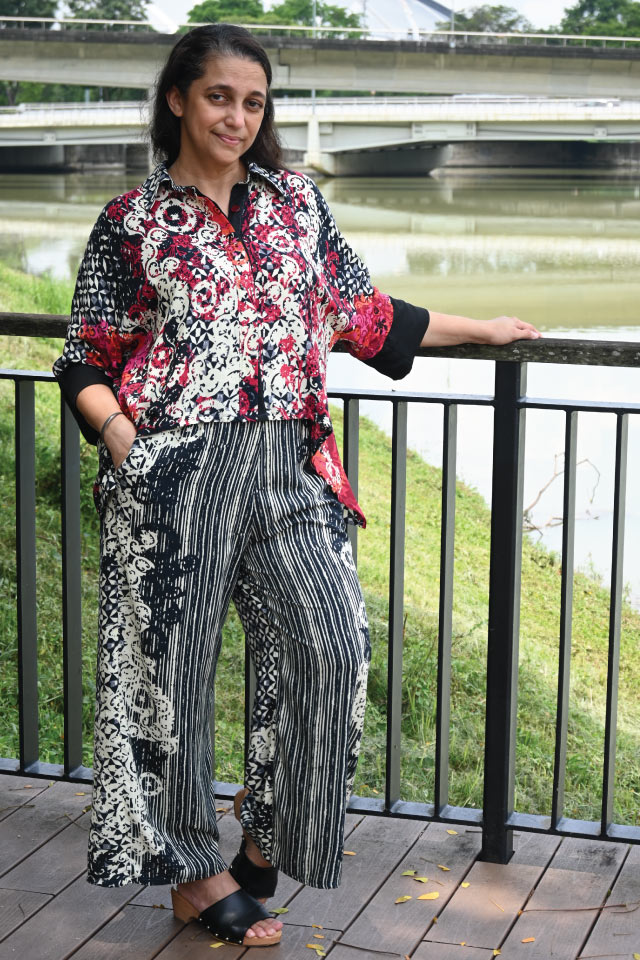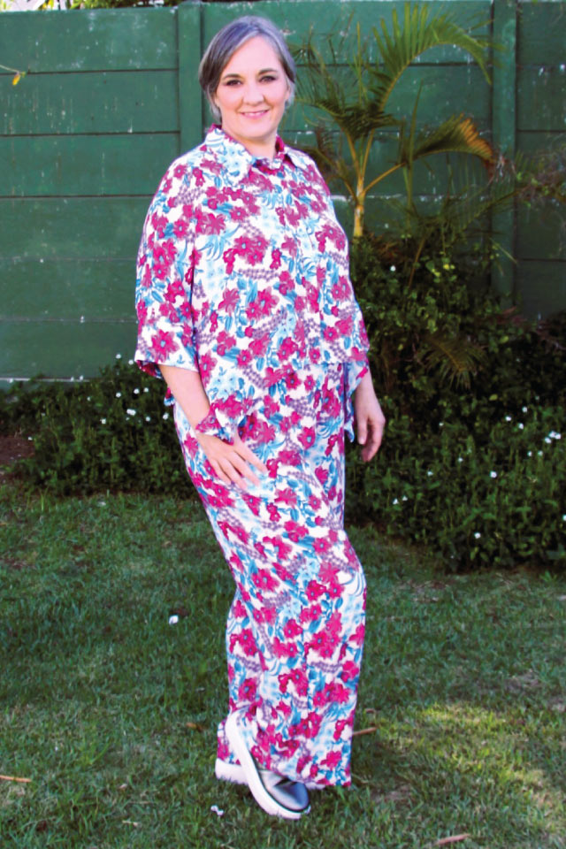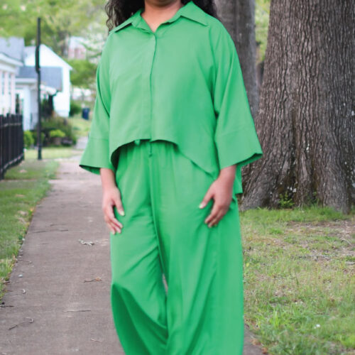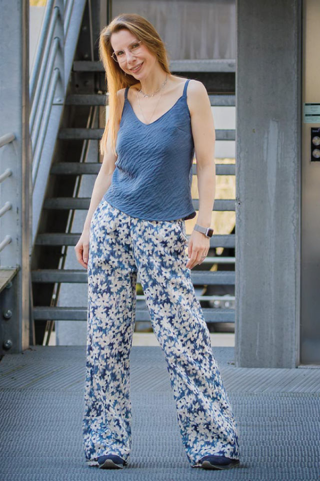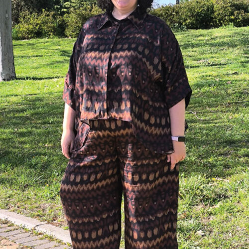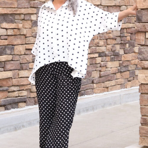 The shirt is oversized, so it needs a really soft fabric. And the pants also need to be soft and flowing.