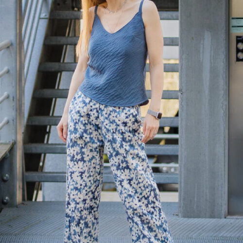 The Wren Pants are a loose fit – semi-wide leg pant – with an elasticated waistband – and side slant pockets – which offer a fabulous comfortable fit.